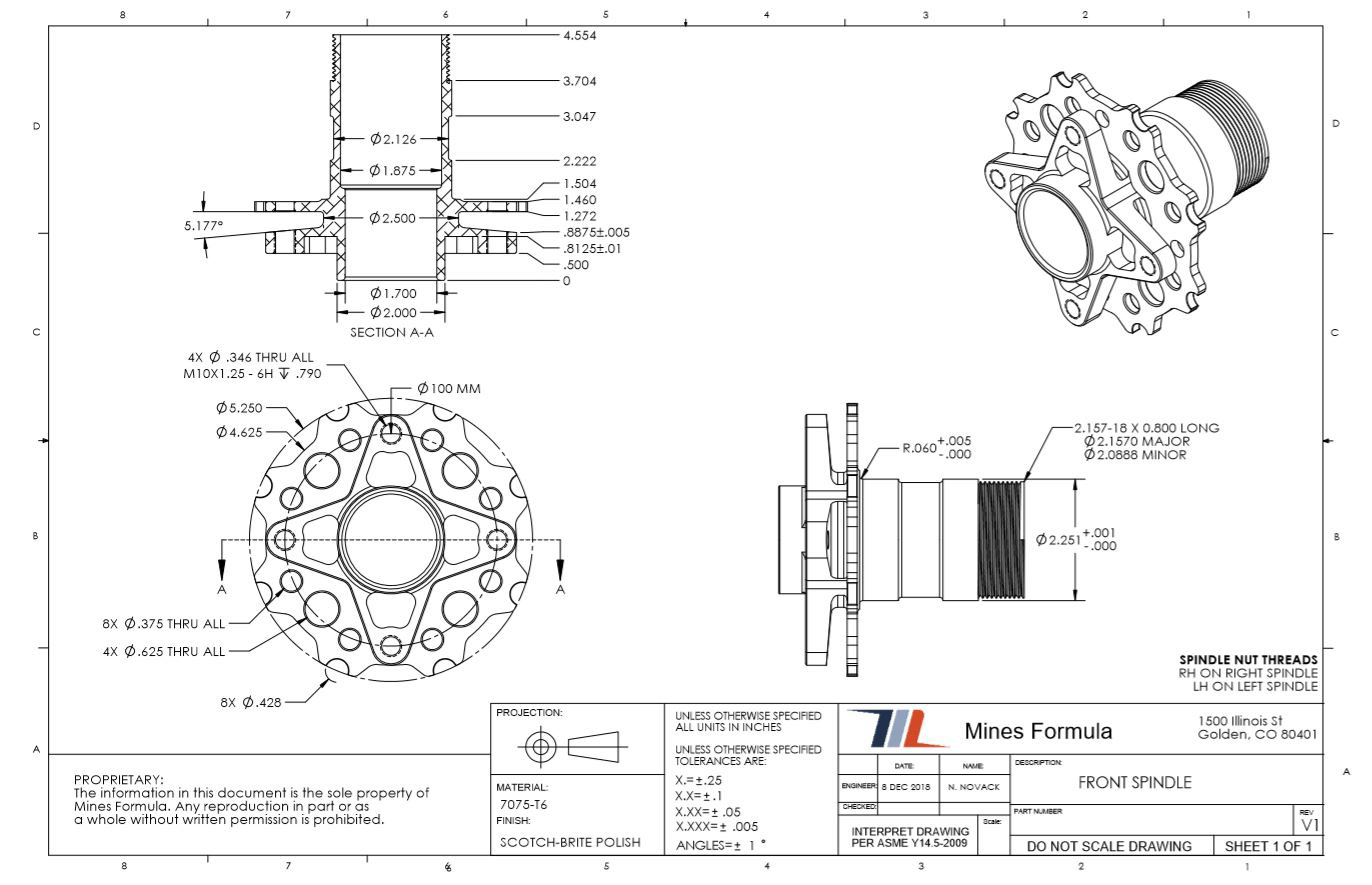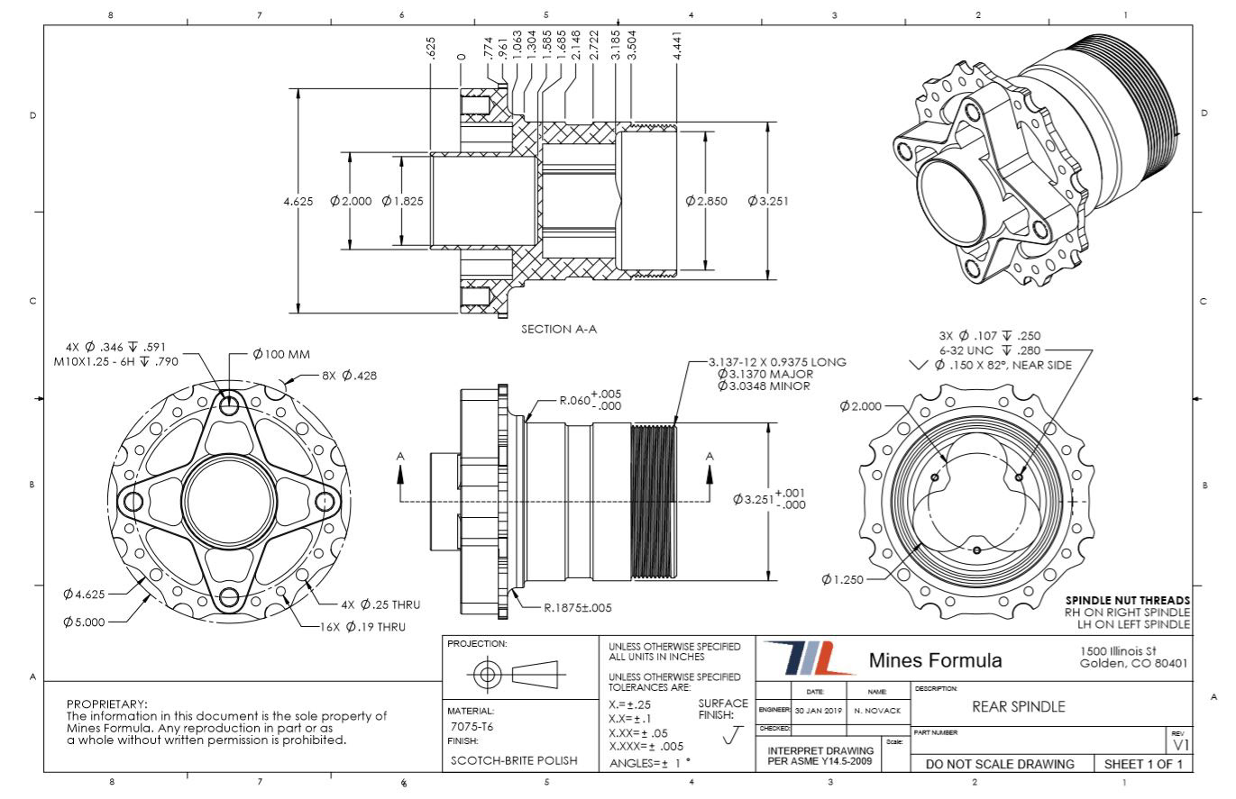 Once the part was modeled, it was checked for fitment against its interfacing components, and necessary adjustments were made. After running structural simulations and iterating several times, prints were finalized and sent to the machine shop along with the bar stock. Following delivery, the parts were inspected, installed on the vehicle, and tested. In accordance with the goals of the project, the mass was reduced by roughly 50 pct and the wheel compliance was eliminated.