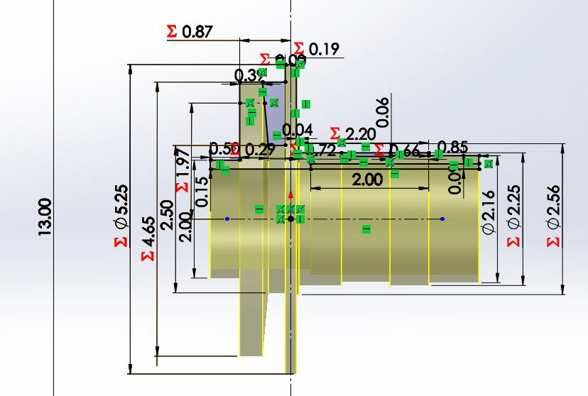 The first step in designing the spindles was creating a modular base sketch which allows the geometry to quickly adapt to changes made by interfacing components. Additionally, this sketch was set up with the manufacturing process in mind. It was decided early in the process that the hubs would first be machined on a CNC lathe to hold tight radial tolerances, then loaded into a CNC mill to complete the rest of the operations. The team has access to CNC mills, but not CNC lathes, so the first operation would need to be outsourced. To simplify the operations for the machine shop, the parts were modeled such that the features were grouped together into different machining operations: one for the as-turned part, a second for the first milling operation, and a third for the second milling operation. This allows the part to be rolled back and forward to view the sequential steps of its machining operations.