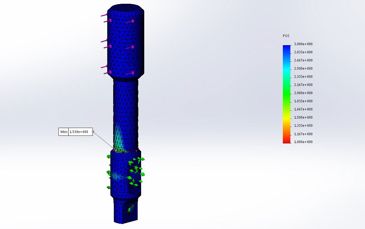 Once these parameters were st, the detailed design was tasked to a small group of newer members. The designs were realized in CAD and analyzed using finite element analysis. Once the regions of higher stress were identified, the designs were modified accordingly; this cycle continued until the assembly was brought down to the target weight.